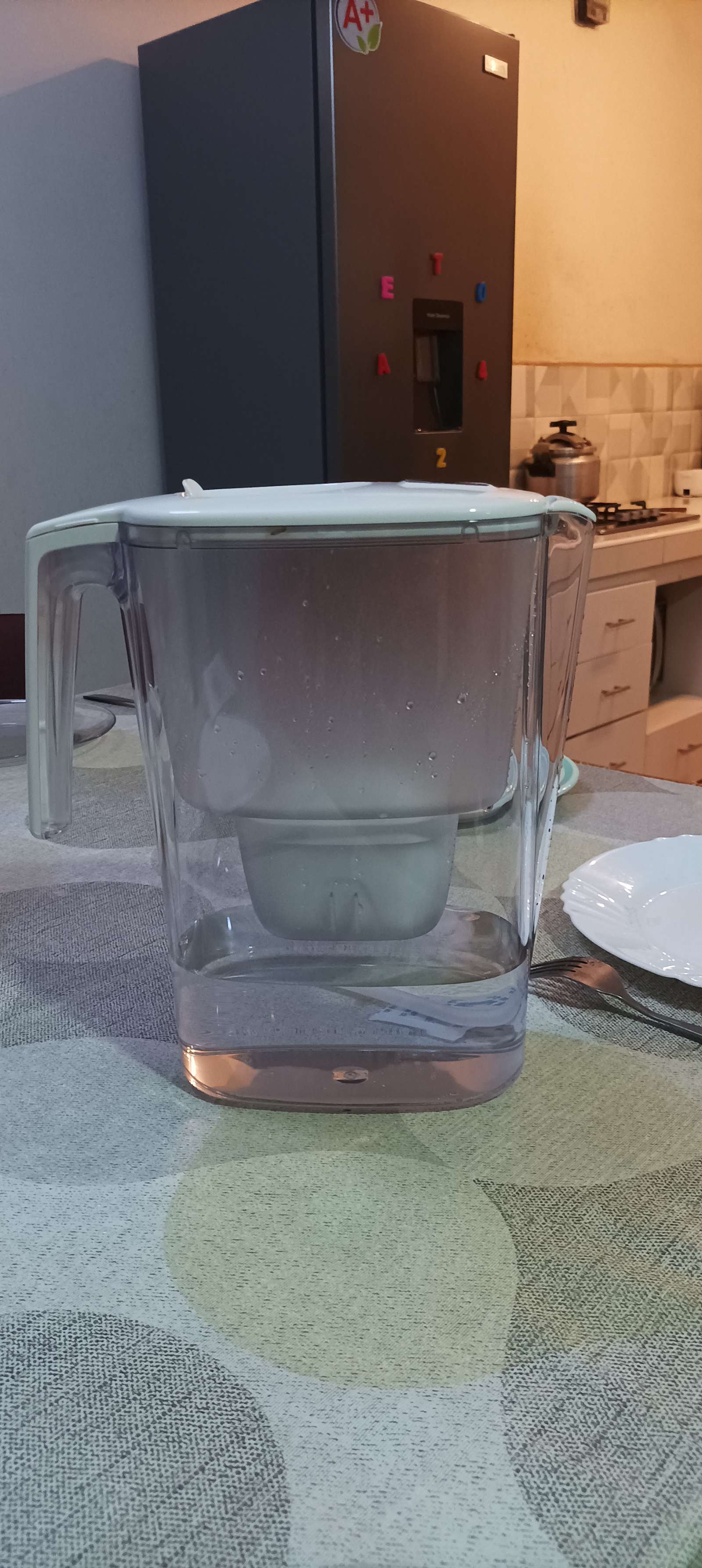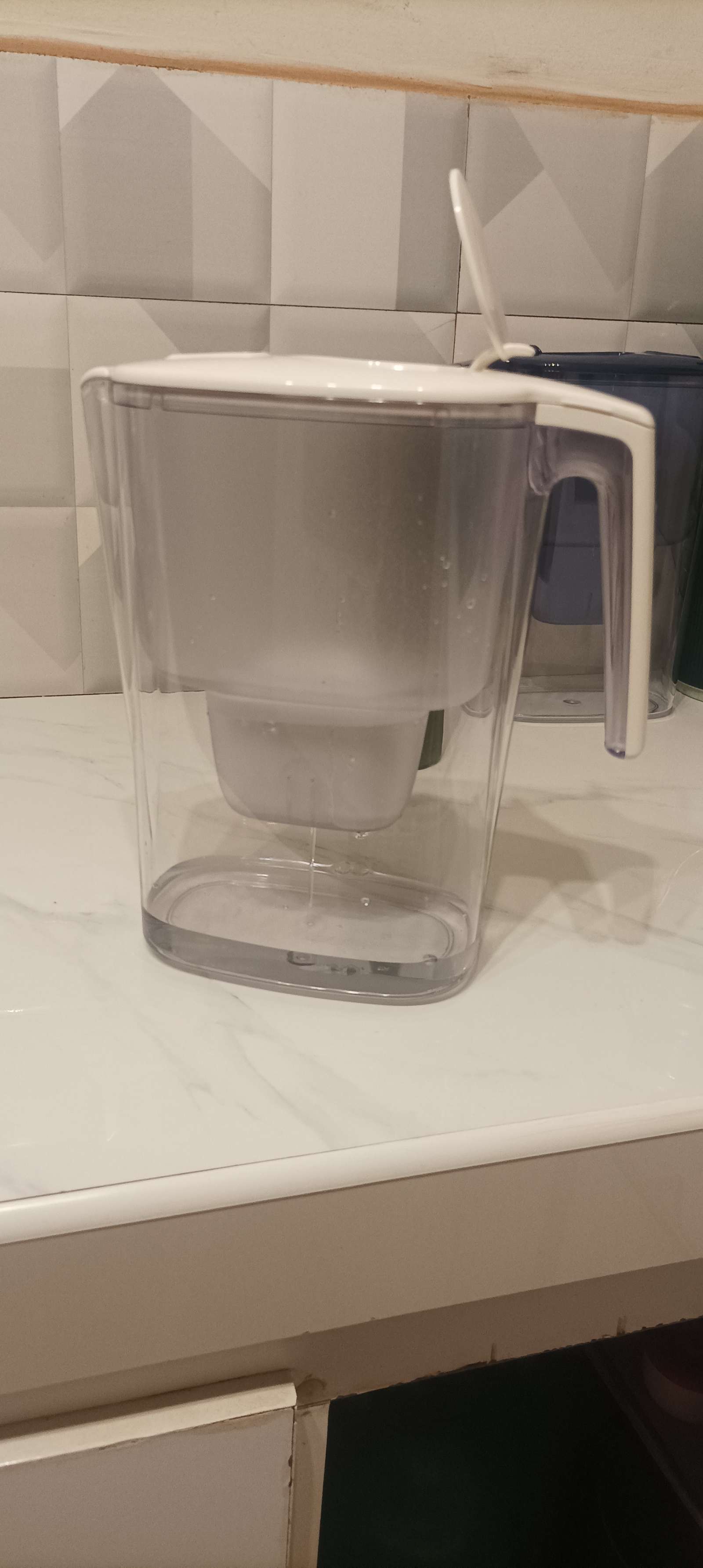 Carafe à eau avec filtre sous carton de couleur blanche ou bleu, capacité 3,6 litres. Idéal pour eau jirama et eau de puit.
